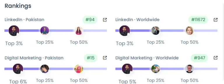 I am ranked in the Top 3% of LinkedIn professionals in Pakistan, recognized for thought leadership and digital growth insights.